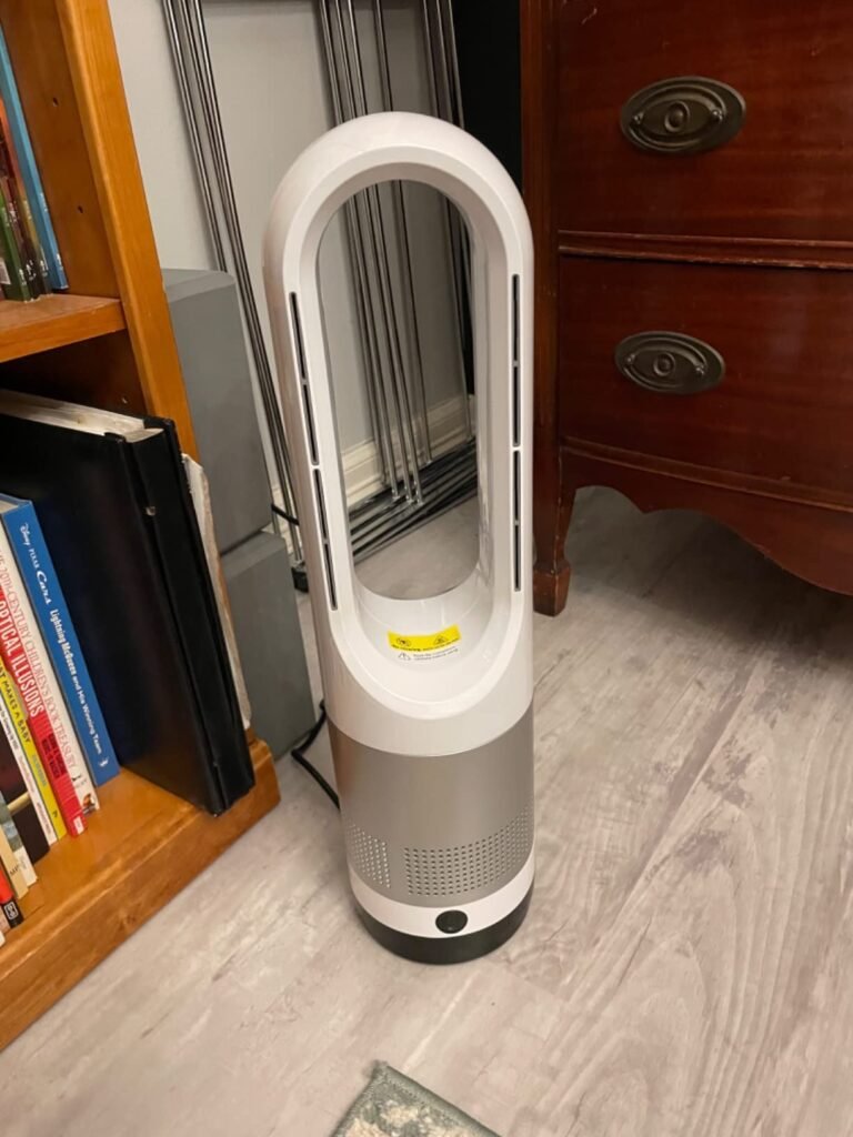 Das Design ist modern und platzsparend. Besonders gefällt mir, dass er gleichzeitig kühlt und die Luft reinigt. Sehr empfehlenswert bei Allergien!
