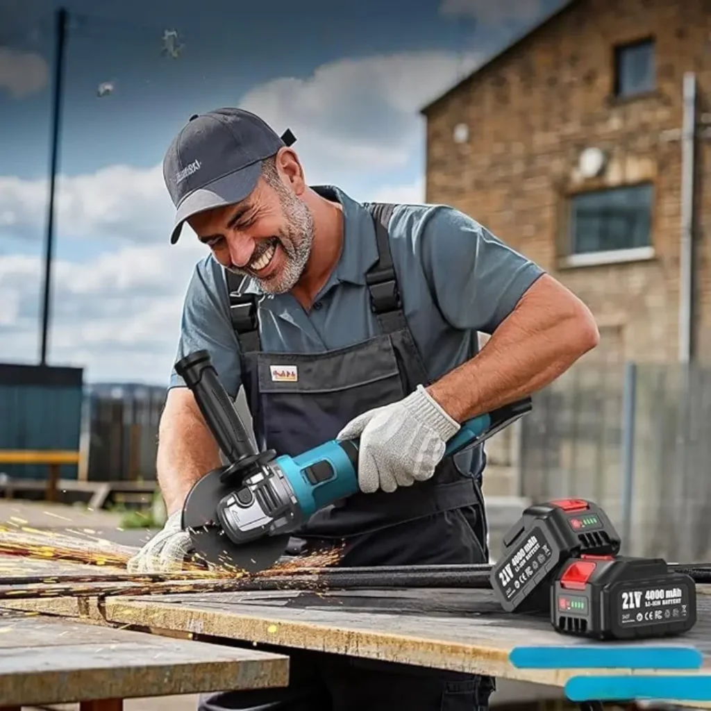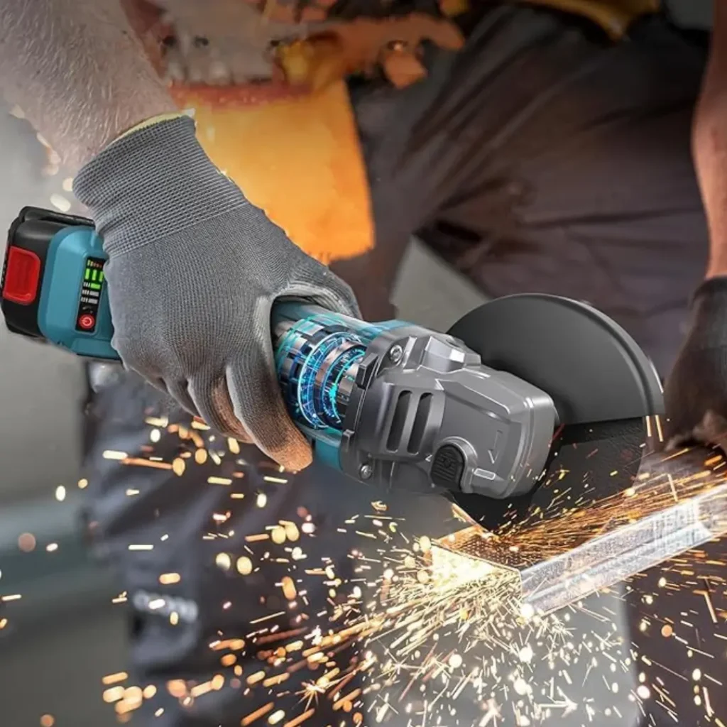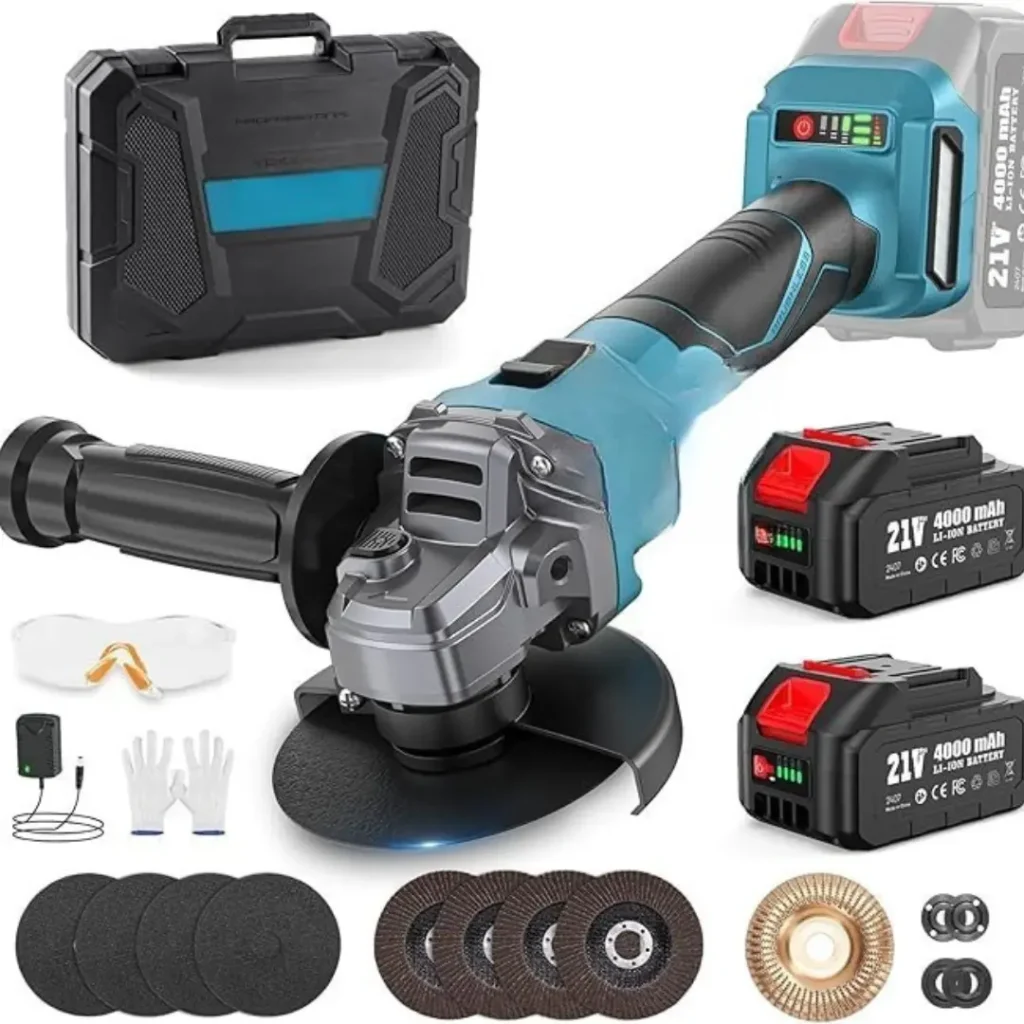 Szlifierka akumulatorowa 125 mm z pełnym zestawem: 2× baterie 4000 mAh, bezszczotkowy silnik, 10 000 obr./min, tarcze do metalu, drewna i szlifowania