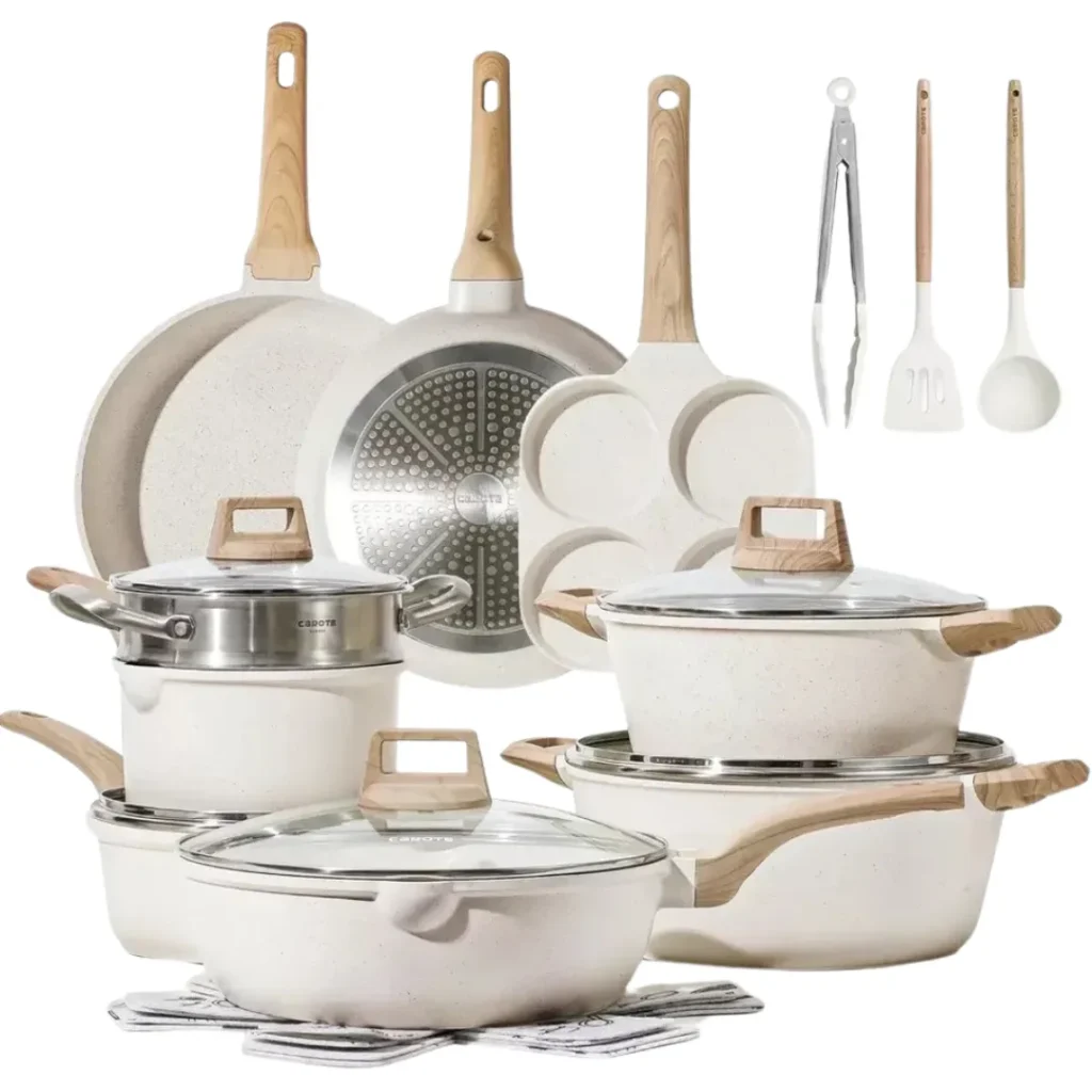 Estoy sorprendida por la calidad de este juego de cocina. Calienta de manera uniforme, es muy fácil de limpiar y parece que durará para siempre. ¡Vale totalmente la pena!