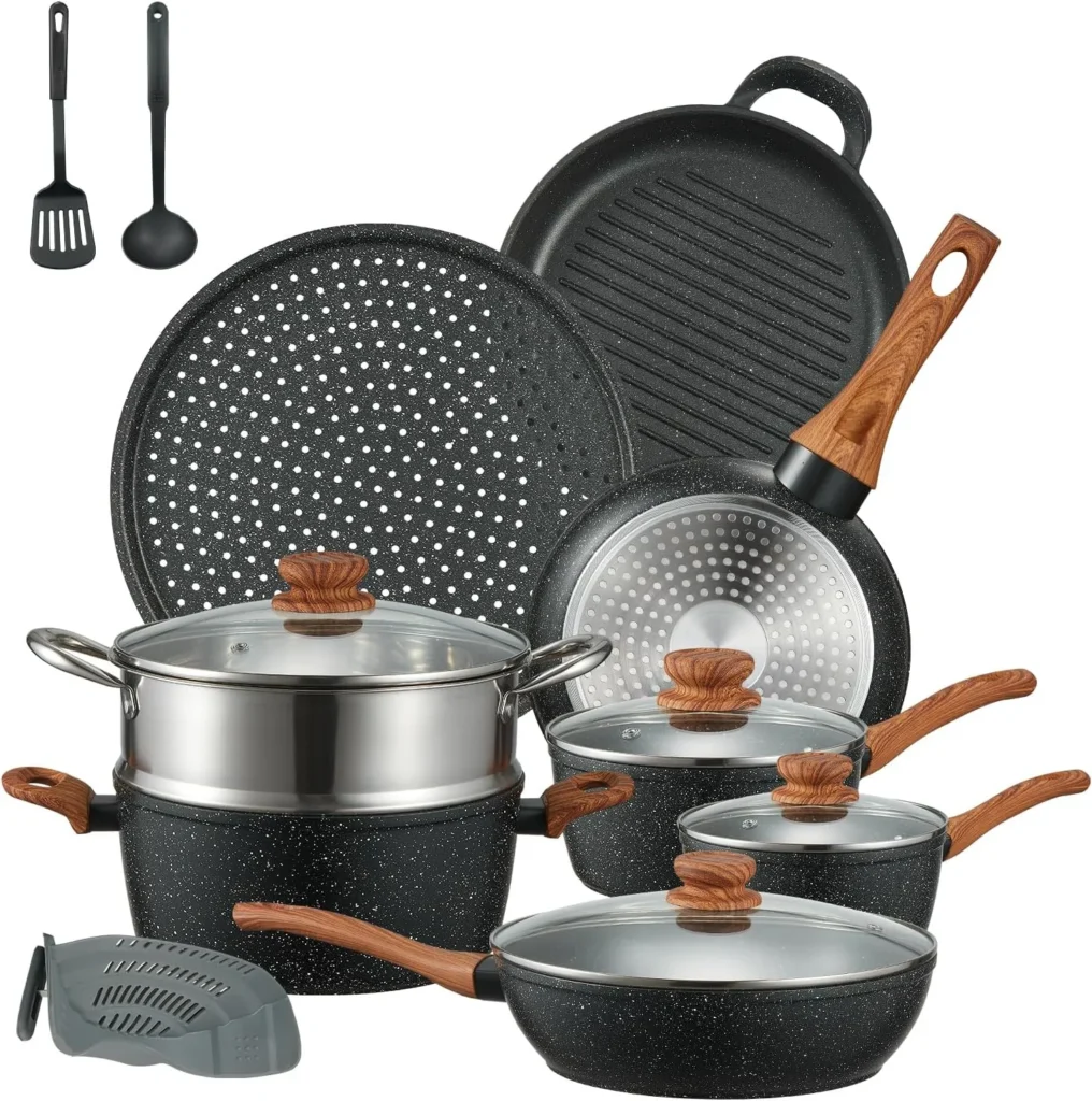 Libre de PFOA, PFOS, cadmio y plomo, este juego de cocina garantiza que tus comidas sean seguras, saludables y llenas de sabor natural.